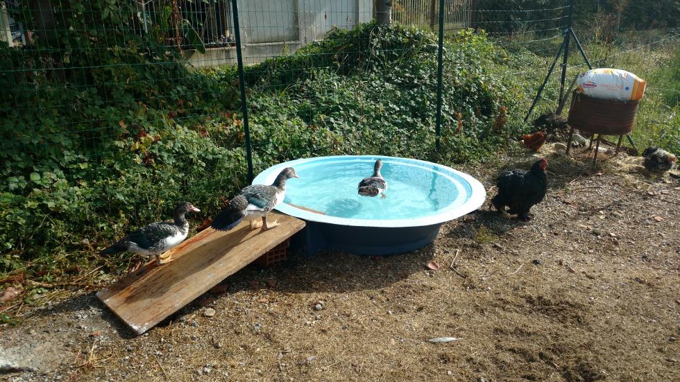Della serie proviamo a complicarci la vita....come magari qualcuno di voi sa mi ritrovo ad avere quattro anatroccoli che hanno poco più di due mesi La tinozza in cui si bagnano oramai è piccola così grazie a delle conoscenze in ambito lavorativo ho recuperato un bacino in vetroresina per un piccolo laghetto, dimensioni 150 cm di diametro per 40 cm di altezza Ora ho bisogno di più consigli possibili per utilizzarlo al meglio L'idea originale sarebbe di posizionarlo fuori terra in modo da poter creare uno scarico da usare per la pulizia periodica pensavo di usare dei blocchetti di cemento prefabbricati per creare il basamento poi fare in modo di aumentare il bordo così da fare una piccola terrazza per quando escono dall'acqua Servirà una pompa per il ricircolo??? Ma sono certo che mi saprete aiutare nella posa e costruzione