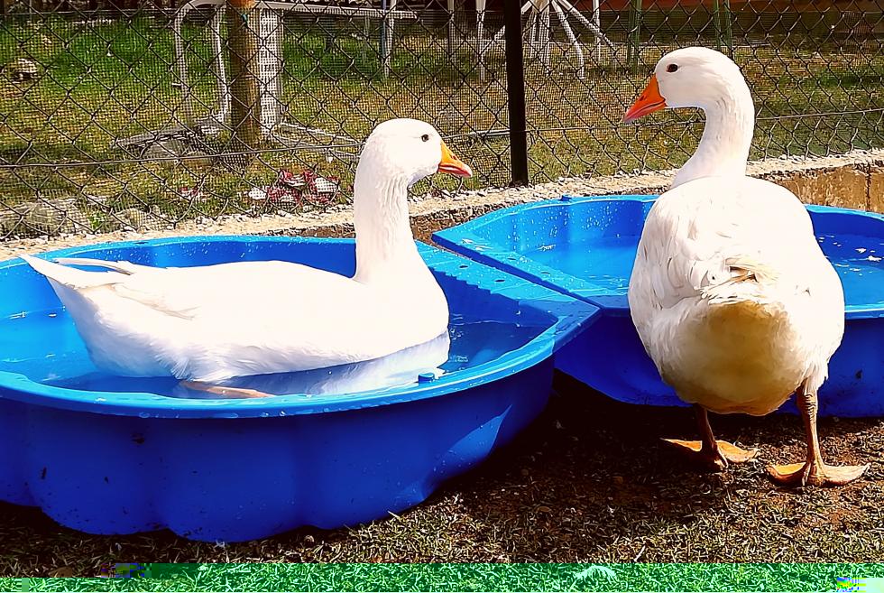 Si, mi sembrano romagnole, e in particolare quello in acqua mi sembra un bell esemplare. Le oche domestiche, come nel tuo caso, mangiano di tutto scarti di cibo umano, mangimi, erbe, ortaggi, insalate... Perciò prova a darle dell' insalata, del mangime per polli e vedrai che prima o poi mangeranno, non si lasceranno morire di fame. Magari mangiano quando non le vedi.