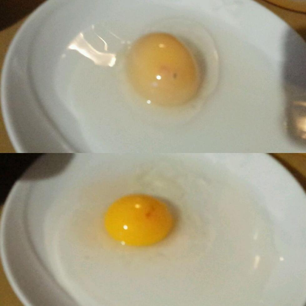 Sopra è quando era ancora nella membrana, sotto è una volta rotta e fatto uscire. Ne è risultato un normalissimo uovo.