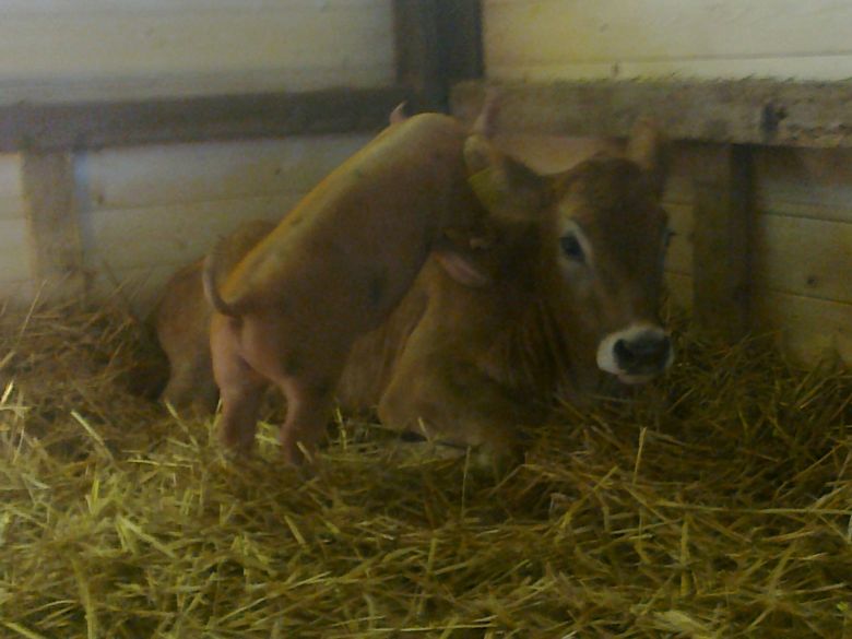 Alla fine ho preso questa..! metà limousine sicuro..il resto..non si sa" il maialino è inseparabile impossibile prendere nella foto lei da sola.... l avevo messo con gli altri 2 maiali piu grandi che ho ma se non li fermavo con il badile se lo stavano mangiando!! e si ne hanno di spazio.. per voi l altra metà è pezzata rossa??