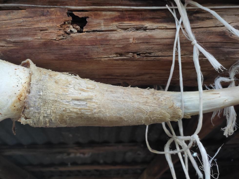 Solitamente le bollisco in acqua e poi le lascio all'aria aperta così come sono per circa un anno, in modo che i vermi le puliscano per bene all'interno. Il problema è che le corna si "rovinano" (vedi altra foto), probabilmente perché sono di bovini di due anni al massimo.