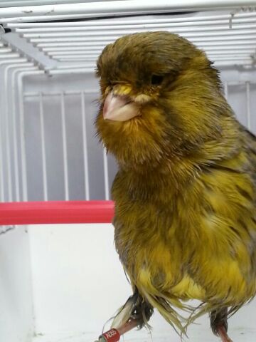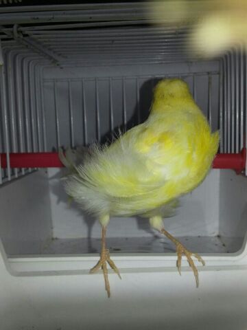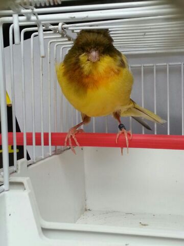 Quelli con l' anello nero sono tutti del 2013 mentre quello del Norwich dovrebbe essere arancione se non sbaglio e quindi del 2010 (se rosso è del 2012). L' anello fucsia è del 2009. Il canarino York mi sembra più un migliorato che non uno York puro: vengono definiti York migliorati i canarini frutto di incroci tra York ed altri canarini effettuati per rinvigorire alcuni ceppi oppure per creare femmine balia per canarini Yorkshire (in questo caso si ottengono femmine più tardive nello svezzare i pulli rispetto alle razze di taglia normali e quindi meno propense ad abbandonare i piccoli di York per l' appunto più tardivi) che possono essere o altri canarini di taglia grande come bernois o lancashire (per fini selettivi....ci saranno poi altri lavori di selezione negli anni ed i risultati non saranno esponibili subito poiché non aderenti allo standard) oppure canarini lipocromici o melanici di taglia piuttosto grande (ma di colore richiesto dallo standard dello York....non si sa mai che non possano essere inserite in un programma di rinsanguamento) per il secondo caso (cioè creazione di balie). Probabilmente la tua femmina potrebbe anche allevare la prole poiché credo sia frutto di incrocio. Il Norwich non ha niente.....sono quelle pustole che ti dicevo causate da errati posatoi non idonei ai Norwich e ad altre razze pesanti (consiglio quelli in legno liscio poiché con un canarino così pesante non risolveresti il problema con quelli in legno zigrinati). Il canarino lipocromico invece dovrebbe essere frutto di meticciamento tra canarini a fattore rosso e a fattore giallo poiché non è giallo dorato ma piuttosto giallo aranciato e per di più con presenza di categoria mosaico ma non selezionata forse originata da errato accoppiamento tra un canarino mosaico ed uno brinato oppure tra due portatori di mosaico (questo spiegherebbe perché il canarino non presenta le zone di elezione (faccia, spalline, petto e codione) dei mosaico ben definite e nettamente distinte dal resto del piumaggio. Ti mando un messaggio privato per il disinfettante che puoi utilizzare per tentare di far seccare il callo del Norwich probabile causa di vendita al negozio da parte dell' allevatore.