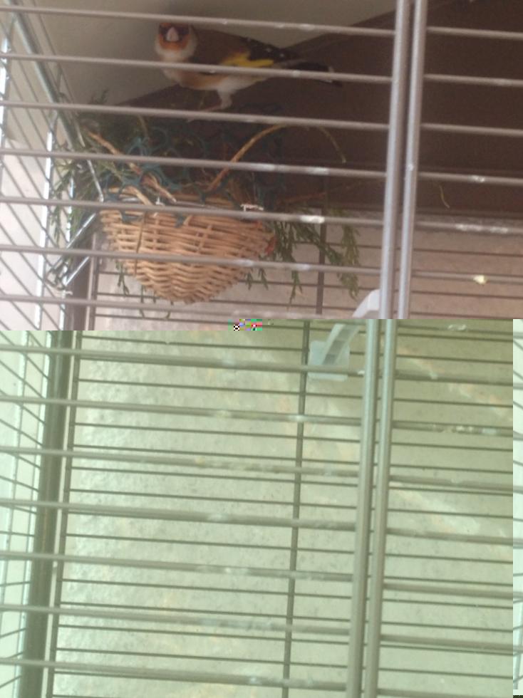 No il mio è caduto dal nido e l'ho imbeccato a mano, infatti mi mangia dalle mani. Vi faccio vedere come ha ridotto il nido sopra, per fortuna la rete.