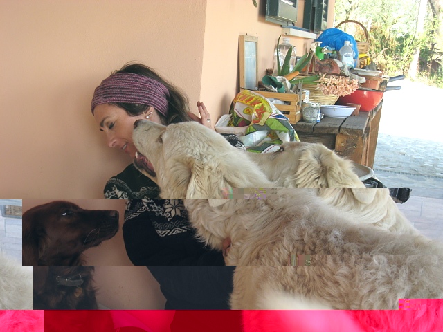 In questa ultima bellissima foto Susanna questi due bestioni ti stanno venendo vicino come alla mamma. Ti arrivano da sotto, orecchie all'indietro, collo allungato. Molto bello. Solo che tu non dovresti sottrarti ai baci sulla bocca...  >E' un gesto che facevano con la loro mamma, quando le chiedevano il cibo. Ripeterlo con te testimonia la loro sottomissione. NOn ti devi sottrarre  !!!! bleah! poi ti vai a lavare, se vuoi  ....