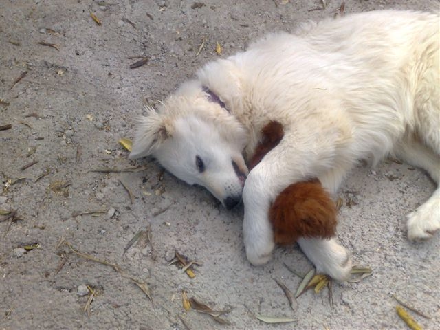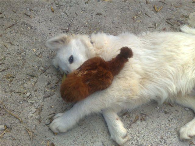 I problemi son venuti dopo, quando nel frattempo la cagna ha partorito e i cuccioli hanno cominciato a giocare e via via a diventare autonomi. Quelli non volevano sentir ragioni, per loro le gallinelle erano un gioco molto entusiasmante. Quindi ho ritenuto opportuno chiudere le galline tutto il tempo nel recinto del pollaio, finché ho dato via tutti i cuccioli tranne uno. Rimasto solo il cucciolo, di circa 3 mesi, era più gestibile e così piano piano gli ho insegnato a non infastidire le galline. Ha imparato abbastanza presto. Adesso ha 7 mesi, è ancora giovane ed esuberante e, ogni tanto si diverte ancora a farle correre un po' senza toccarle ma, a un mio richiamo, smette immediatamente e le lascia in pace. Addirittura le galline, al momento del pasto dei cani vanno a becchettare tranquillamente nelle loro ciotole