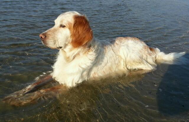 E questo è Zagor, setter inglese, adottato quasi 7 anni fa, dopo 3 anni passati al canile. Foto di oggi al mare.