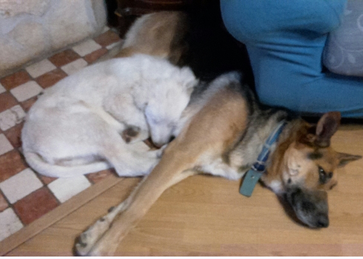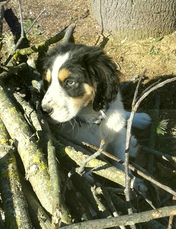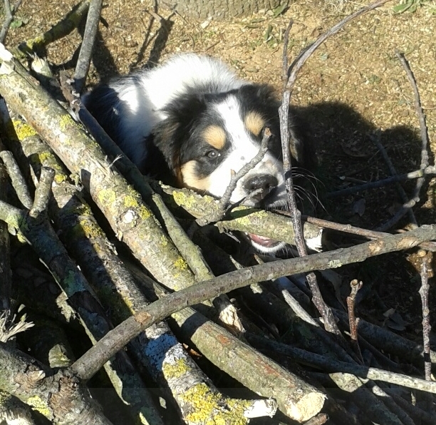 Ecco alcune foto scattate ieri dei miei cuccioli,qui si vede Zeus sdraiato a prendere il sole e Lino alle prese con alcuni rami di castagno.. Allegato: