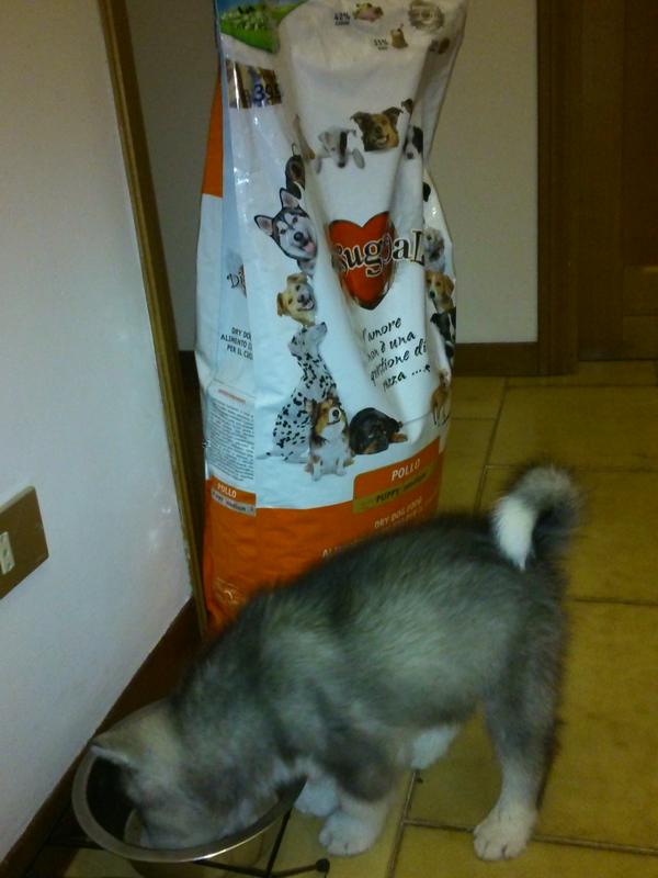 Ho alcuni problemi con la diarrea, l'ho sverminato la seconda volta e ho dato due giorni di riso, qualcosa si e ripreso ma ancora fa feci mole ma non piu acquose. Il venditore dal negozio mi ha raccomandato un mangime con 30% di proteine per cuccioli da media stazza, non vorrei che non lo digerisce bene. Ha avuto anche un alito pesante per 3-4 giorni ma e sparito. Ha sempre qualcosa da mordere vicino e ha sempre voglia da mordere (mani, piedi, pantaloni e ciabatte comprese). Ho osservato che non e un cane pauroso, se i corri dietro non scappa ma gira e ti viene incontro, cammina o gioca vicino al padrone, si allontana per poco ma torna sempre a cercarti. Dorme tranquillo la notte da solo e di giorno quando siamo a lavoro e figli a scuola ha a disposizione la cucina e l'ampio terrazzo. Mi preoccupa un po' la coda che la tiene quasi sempre sulla schiena ... L'ho devo imparare la parola ''NO''