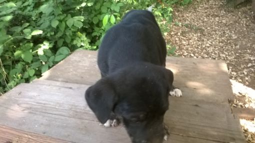 Grazie Gianni, allego foto per dare l'idea di che mantello verra' fuori?!( e' femmina 2 mesi) Ha la maggior parte del mantello nero, le macchie bianche, le tigrature zampe, faccia laterale, evolvera' in un tigrato completo? Si tratta di un nero focato? Grazie