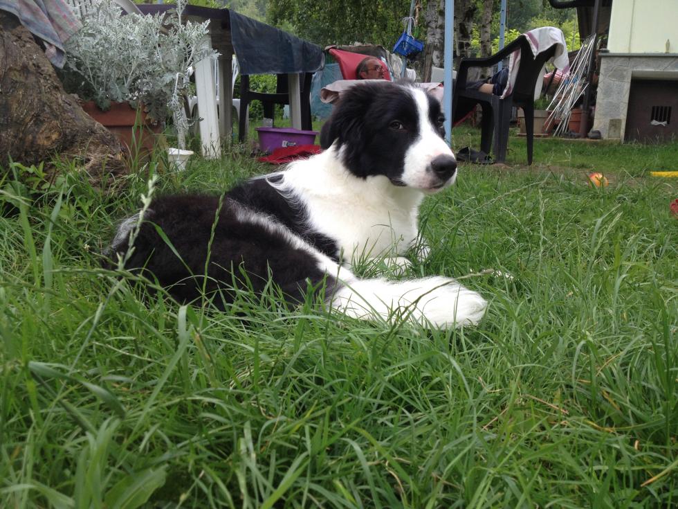 zeus cresce sano e forte e ogni giorno mi stutpisce con le cose nuove che impara e senza mai dimenticare le cose che aveva imparato a 4 mesi , ora ha anche preso il vizio di decidere da solo cosa e meglio, ad esempio , se trova il cancello socchiuso si siede davanti e non si muove fino a quando uno di noi non va a chiuderlo del tutto, se entra qualcuno con la macchina si accuccia al bordo del prato per non finire sotto le ruote e aspetta che si apra lo sportello per vedere chi esce dall auto, poi se sente il grido di un falco o di una poiana , raduna subito tutte le galline nei pollai e si mette al centro del prato guardando verso il cielo, cose che non gli ho mai insegnato, ora e pesa 19kg e lui stesso si sente piu forte ed in grado di fermare cani che si avvicinano alla recinzione e possano essere un pericolo per le sue galline, poi se uno della famiglia esce dal cancello, lui , per proteggerlo lo segue in silenzio da distanza ravvicinata come un ombra e non appena rientro e chiudo il cancello lui si allontana nel prato a giocare con la pallina. che dire, il border colli e un animale intelligentissimo, in grado di prendere decisioni da solo, per il meglio per la protezione del nucleo famigliare e per gli animali che custodisce, tipo guardia del corpo, solo e un cane leggero, ma non esiterebbe un secondo a mettere la propria vita a repentaglio per tutti quelli che gli appartengono, lo consiglio anche a chi ha bambini perche e dolcissimo delicato e premuroso e sa come deve ridurre la sua forza nel gioco a secondo la grandezza del bambino. e un cane fantastico, non avrei mai creduto fino a questo punto