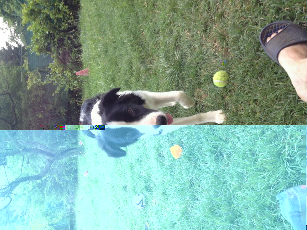 qui il mio zeus che aspetta che gli lanci la pallina, notare la quantita di palle che porta in giro nel prato tutti i giorni oltre ad altri suoi giocattoli