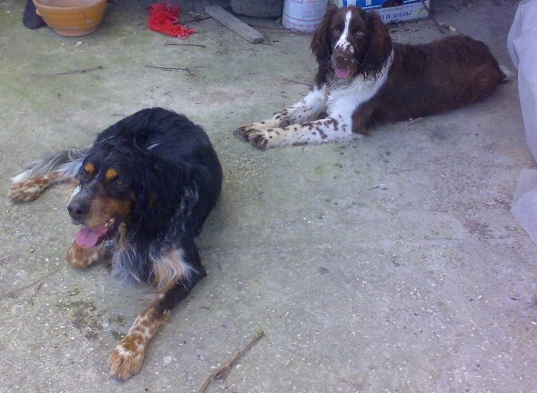 ecco i miei cani Roy setter inglese tricolore di 3 anni e miccia springer spaniel di 11 mesi ( e 22 kg!!)