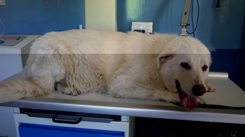 Ciao, l'agriturismo va bene, ci abbiamo impiegato due anni ad aprire dati i tempi italiani burocratici... facciamo attività sportive e organizzeremo eventi coi bimbi I cani sì, hanno caratteri differenti e ci va bene. Come a ragione dici, si compensano nel lavoro. Le cagne hanno avuto il primo calore a 9 mesi e da lì sempre puntuali, solo che si sono sincronizzate con le altre femmine, coi lagotti, quindi un calore è stato silente ed è bastato per ingravidarla. Naturalmente se uno volesse farlo apposta, non ci riuscirebbe Nel frattempo oggi visita alla mamma in attesa, i cuccioli sembravano pochi e invece  c'é un bel casino in quella pancia  se avete qualcuno che cerca cuccioli da guardia e guardiania, tra poco li avrò. Sono vicino a Bologna  Eccola sul lettino del vet, molto arrabbiata.