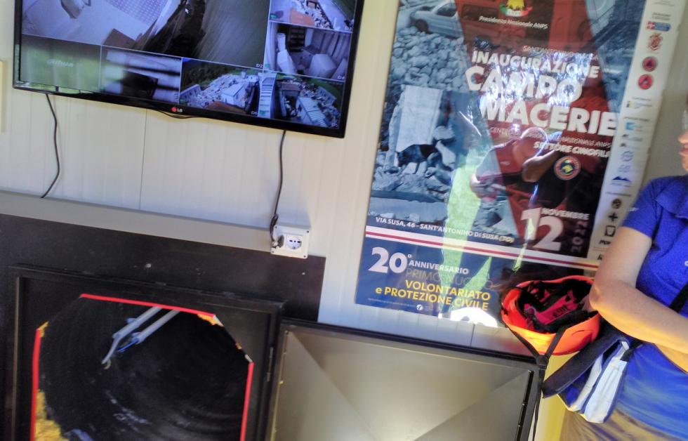 La settimana scorsa sono stato a un campo macerie, inaugurato da poco e gestito dall'Associazione Polizia di Stato cui è affiliato il mio gruppo cinofilo, per un primo approccio a questo tipo di attività. Si tratta di un campo ben strutturato in quanto sono stati previamente costruiti tunnel con illuminazione, telecamere e collegamento fonico, e successivamente accumulate sopra macerie di vario tipo: ciò permette al figurante di entrare separatamente e quindi il cane non ha riferimenti olfattivi di percorso; una volta che il figurante si è posizionato le aperture di entrata dei tunnel vengono chiuse in modo da non avere l'effetto camino dell'odore. Metto 4 foto: l'ingresso dei figuranti avviene da un container dove ci sono le aperture dei tunnel e le apparecchiature di controllo; le ultime due foto sono relative a una semplice prova di ricerca per abituare il cane (indicato con freccia rossa) a camminare sui detriti e dopo l'abbaio si alza la mano per segnalare il "trovato". Come si vede sono obbligatori casco, scarponcini, guanti e il cane va in ricerca a pelo nudo (per evitare il rischio che si impigli il collare/pettorina).