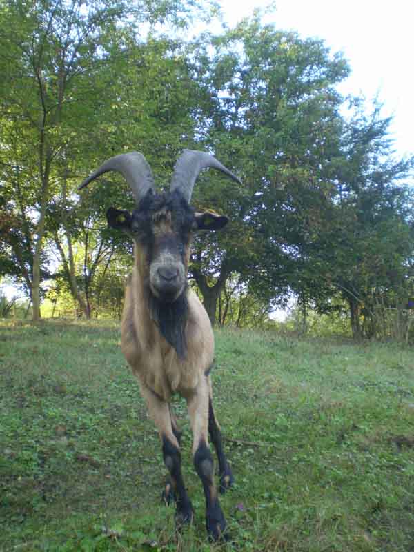 Questo invece è Biancòn, ha 3/4 anni e è un incrocio Saanen. Non è mio, ce l'ho in prestito da un mese per coprire le mie capre. Il proprietario è un contadino del posto di nome Dino.