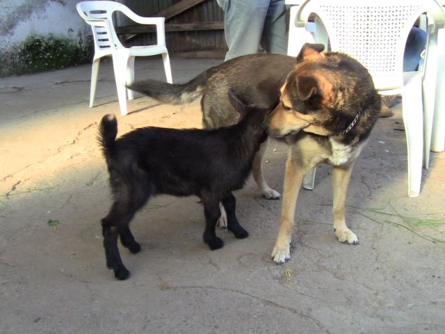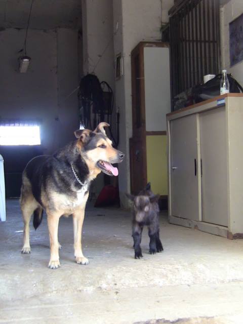 Poi abbiamo Calimero, un mix che più mix non si può. qua era piccolo, ora ha 3 mesi. Diventato come un cane a furia di stare con la vice mamma di tutte le capre  la mitica penny, cane più buono del mondo