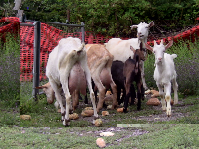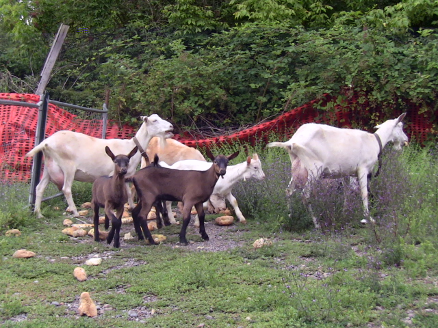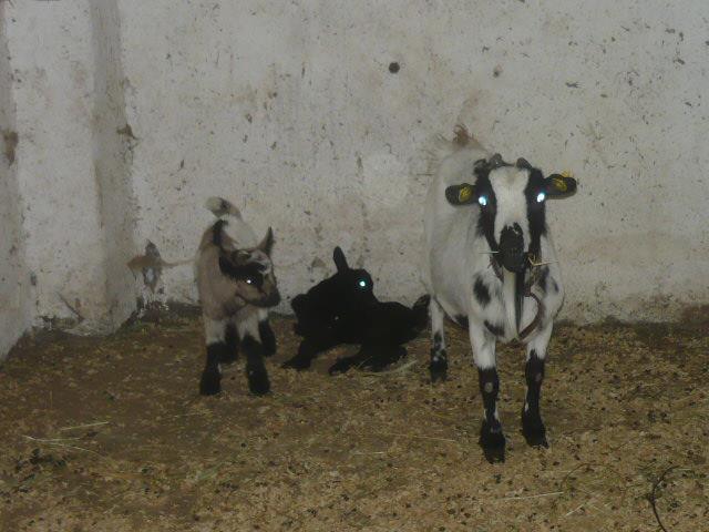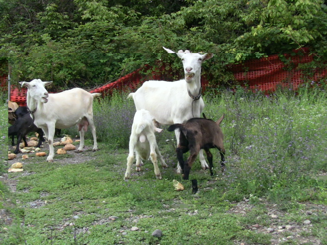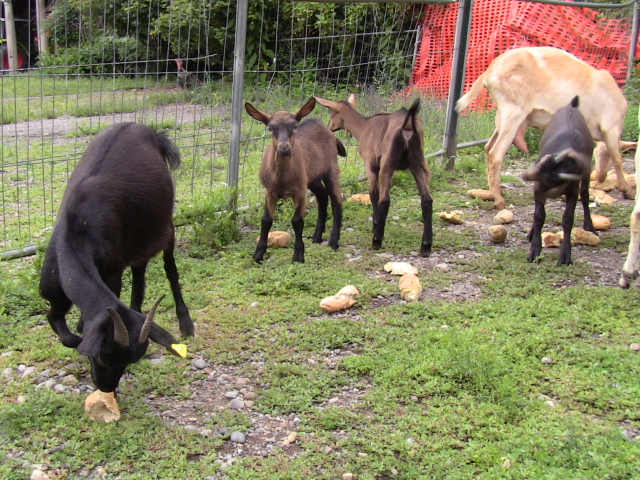 Poi c'è la tibetana con le due caprette nate l'anno scorso e le 2 saanen con i capretti dell'anno scorso