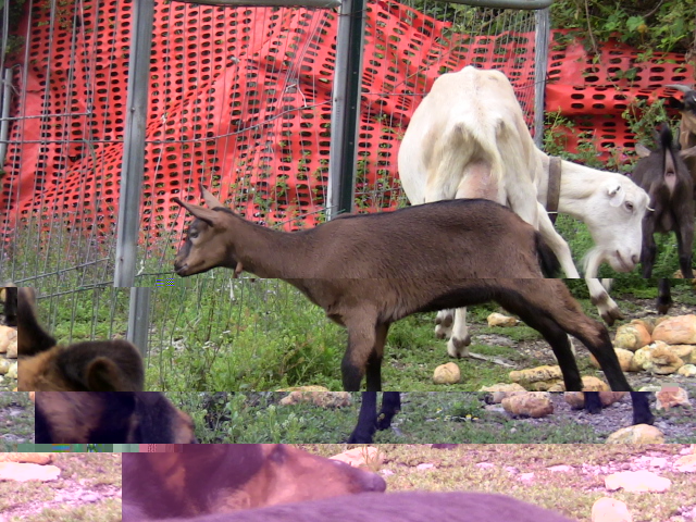 Ciao Lelestro e grazie mille per i complimenti  le foto le ho scattate quando sono andata a recuperarle per metterle in stalla e le furbine hanno visto il pane delle galline e si son fiondate lì ma quello non è il pezzo dove stanno loro durante il giorno. Comunque non te la consiglio la rete arancione per recintare, la strapperebbero in un secondo, le capre sono maestre in questo