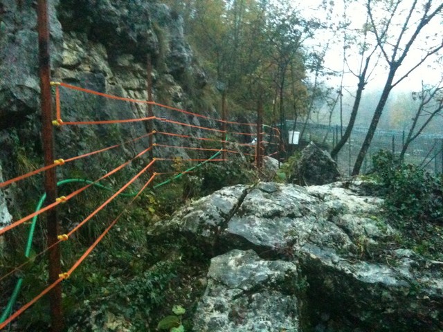 nn vuoi usare rete...nn vuoi usare filo spinato...nn vuoi usare recinzione elettrica!il filo spinato fa male se lo si lascia a livello di terreno..in quei casi è pericoloso per la mammella!!siccome la capra non è stupida...se vede che sopra di lei è chiuso non rischia di saltare...la soluzione megliore per evitare anche il solo rischio di farsi male è la recinzione ai piedi della parete di roccia....dei pali ben appoggiati alla parete..e la rete fissata agli stessi....per la capra ricordati che l'importante non è tanto l'altezza della rete...quanto semmai evitare di dargli dei punti..come rocce,sporgenze ec ecc in cui possa aiutarsi per saltare...in quel caso nn ce rete elettrica,filo spinato,recinzione ..che tenga...almeno con le capre che c sn da noi...poi se prendi sanneen .camosciate e roba cosi abituate alla stalla nemmeno saltano quasi quasi...