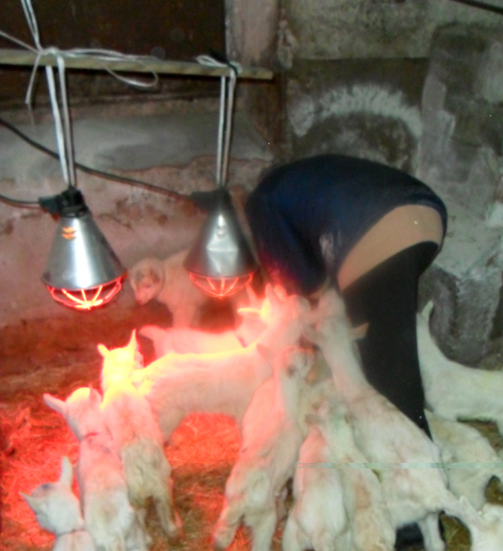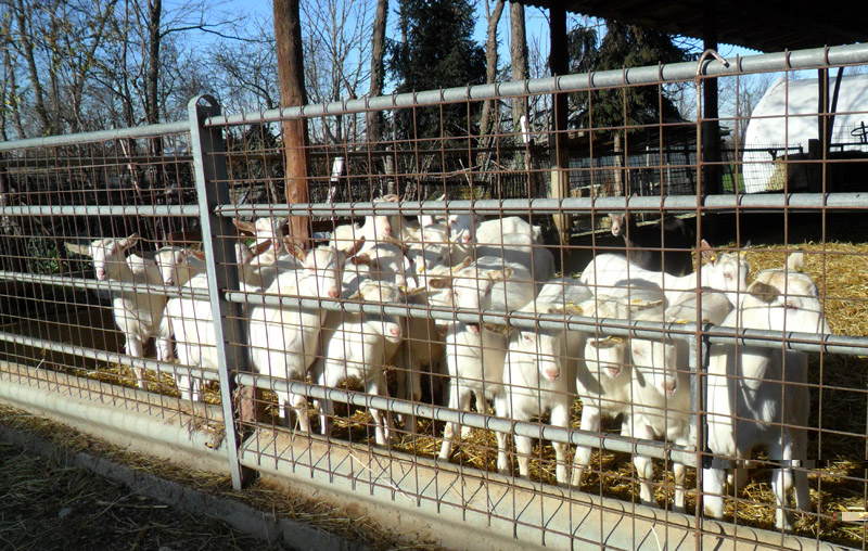 Sono in provincia di Brescia e sì, alleviamo capre per lavoro da circa una dozzina d'anni. Sono circa 120 animali adulti tutti Saanen iscritti al LG tranne una che è nata con il mantello nero sebbene genitori nonni e bisnonni siano bianchi e di razza... mbà! Siccome stiamo cercando di rendere l'allevamento riconosciuto come indenne da CAEV i piccolini vengono tolti dalle madri subito dopo il parto e allattati artificialmente a partire già dal colostro (non ti dico che spettacolo allattarli tutti con il biberon) Quest'anno per la prima volta abbiamo provato a destagionalizzarne un gruppo, infatti invece dei soliti parti a fine febbraio, abbiamo già una cinquantina di capretti anche se la maggior parte partorirà cmq a febbraio/marzo. Posto un po' di foto che ho fatto stamattina visto che ha smesso di piovere.