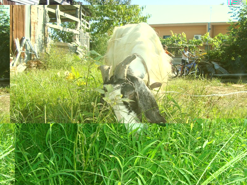 eccola mentre pulisce l' orto (si chiama sara ) ha 8 anni , è un po fuori standard ha la mammella pelosa ed è troppo alta 83 cm . Ma sono convinto che con buoni riproduttori posso migliorare  a voi il giudizio