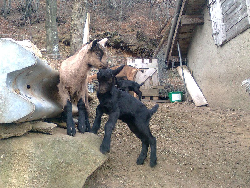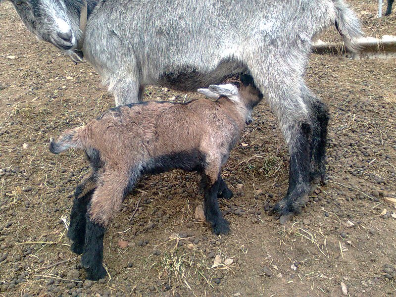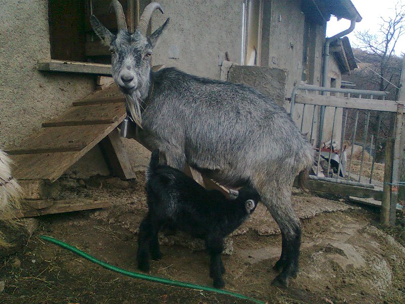 Ciao a tutti, dunque, la mamma è un incrocio Pavone-Grigia e si chiama Gelsomina, il papà del piccolo non ho idea di chi sia! Quando ho delle caprette femmine e decido di allevarle, la responsabile del libro genealogico della Capra Grigia viene a fare un prelievo di tessuto dall'orecchio del capretto per poter determinare attraverso un test del DNA chi è il padre. In questo caso resterà un mistero... Flavia