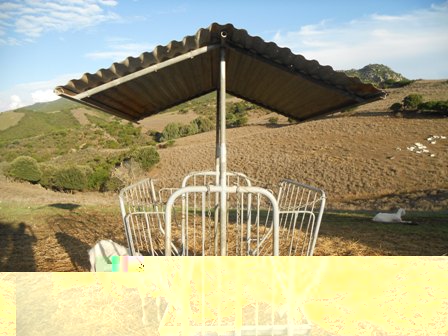 Questa è la mangiatoia che abbiamo inventato per non far sprecare foraggio quando glielo mettiamo all'aperto l'estate.Abbiamo preso l'idea da delle foto che abbiamo visto su internet di mangiatoie di vacche per balloni:poi l'abbiamo adattata per le capre,in modo che non restino incastrate con le corna o ci saltino dentro;e ha funzionato!!!  Ora mangiano tutto senza sprecare niente!!!