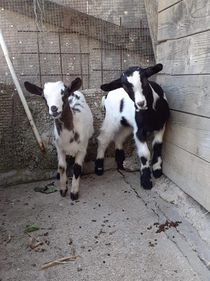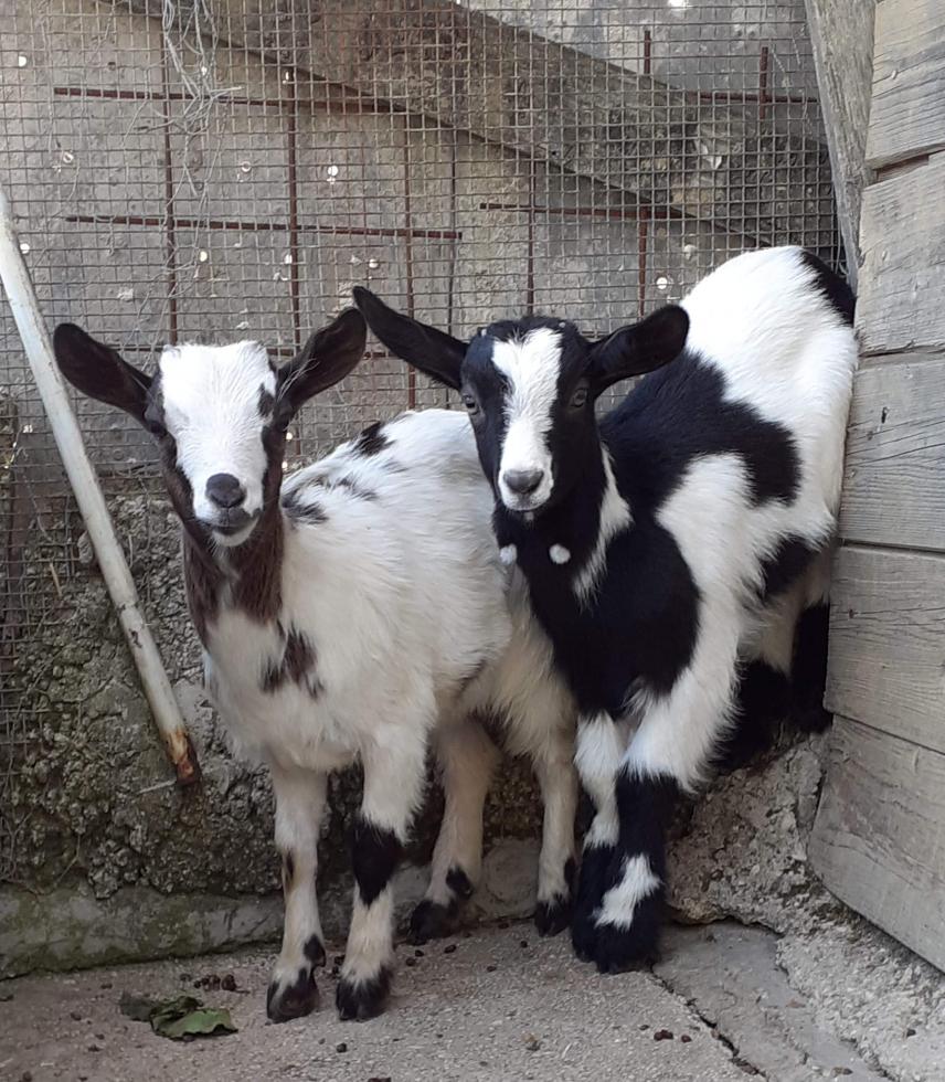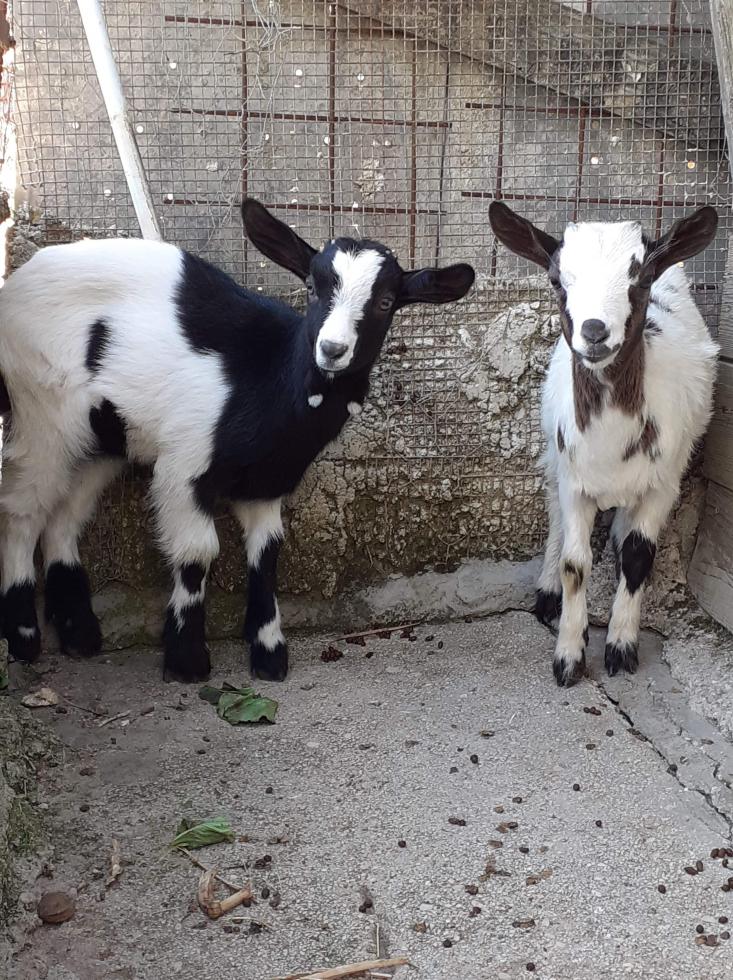 Ciao a tutti. Oggi sono arrivate le mie prime caprette. Hanno sui 4 mesi e sono 2 femmine. Faranno parte della famiglia come animali da compagnia, spero di vederle presto ambientate, per ora sono un po impaurite e non mangiano molto. Secondo voi sono entrambe tibetane? Non sono sorelle e una persona che si è detta esperta mi ha detto che la bianca e nera non è tibetana pura ma una mezza capra ( termine che sembra pure dispregiativo). Ha detto anche per via dei pendenti. Una tibetana vera non li ha? Mi date un parere? Grazie