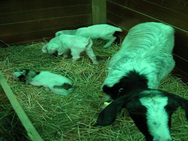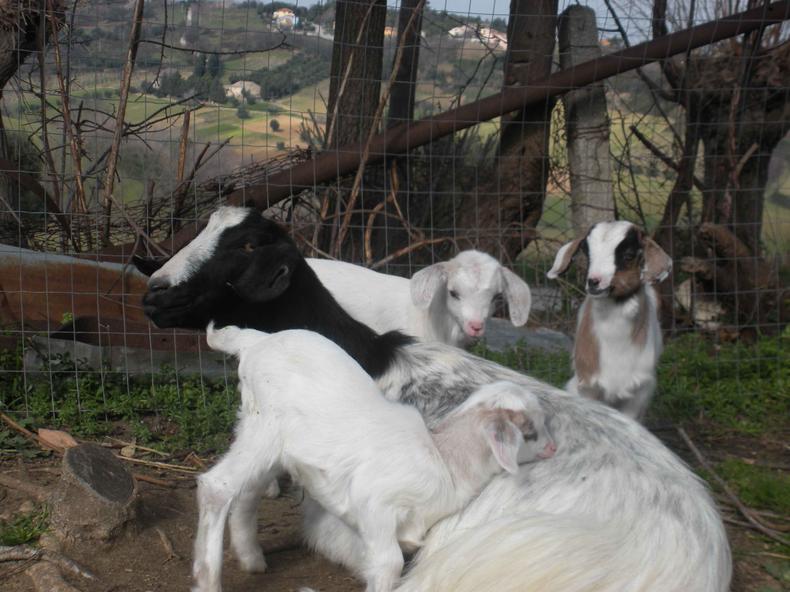 allora, i capretti si sono attaccati tutti alle mammelle e la mamma è instancabile è tenerissima sono tutti puliti e zompettano a destra e a manca, stasera ho provato a sentire le mammelle aveva una mammella da cui usciva poco latte e l'altra più piena, deduco che stanno ciucciando come i matti, una domanda ma da quando devo cominciare a capire se il latte basta o no? giuditta così si chiama alla mattina e sera mangia due razioni da 200g di fioccato e fieno a volontà va bene? da due giorni è chiusa in stalla con i piccoli visto anche il cllima secondo voi quando posso aprire? avro? problemi con le altra capre che sono gravide? litigheranno? l'altro giorno mia figlia di 3 anni si stava prendendo una testata da giuditta.