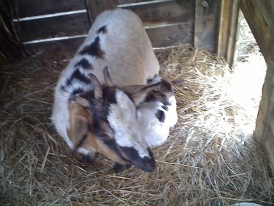 allora adesso voglio spiegarvi come si è comportata ariel oggi,dunque:l'ho portata questa mattina dalla mamma è rimasta tutto il giorno cn lei naturalmente sono andata a controllare circa 5 volte nell'arco della giornata,appena mi vedeva mi belava,però nn voleva venire cn me me l'ho ha fatto capire,io mi avvicinavo e lei cominciava a ciucciare,io la prendevo e lei belava come dire mettimi giù,poi verso le 17,30 era fuori dal recinto che saltellava addosso alla mamma io la guardavo divertita,pensando forse è il momento di lasciargliela!!!!!!ma lei improvvisamente ha cominciato a chiamarmi,io l'ho presa in braccio e lei ha smesso di belare ha messo il musino nella mia mano e mentre la baciavo e la coccolavo si è addormentata,la mamma la chiamava ma lei nn rispondeva,niente ha fatto capire che voleva stare cn me,allora me la sono portata a casa  appena è entrata a casa ha cominciato a correre saltare ed ha imparato anche a salire sul divano  secondo voi ho interpretato bene i pensieri di ariel?guardatela sul divano che dorme la furbona