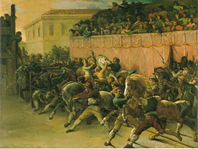 (immagine 1)Moltissimi quadri e incisioni ci raccontano la gara, come i due quadri di A. Rogier, del 1829.
