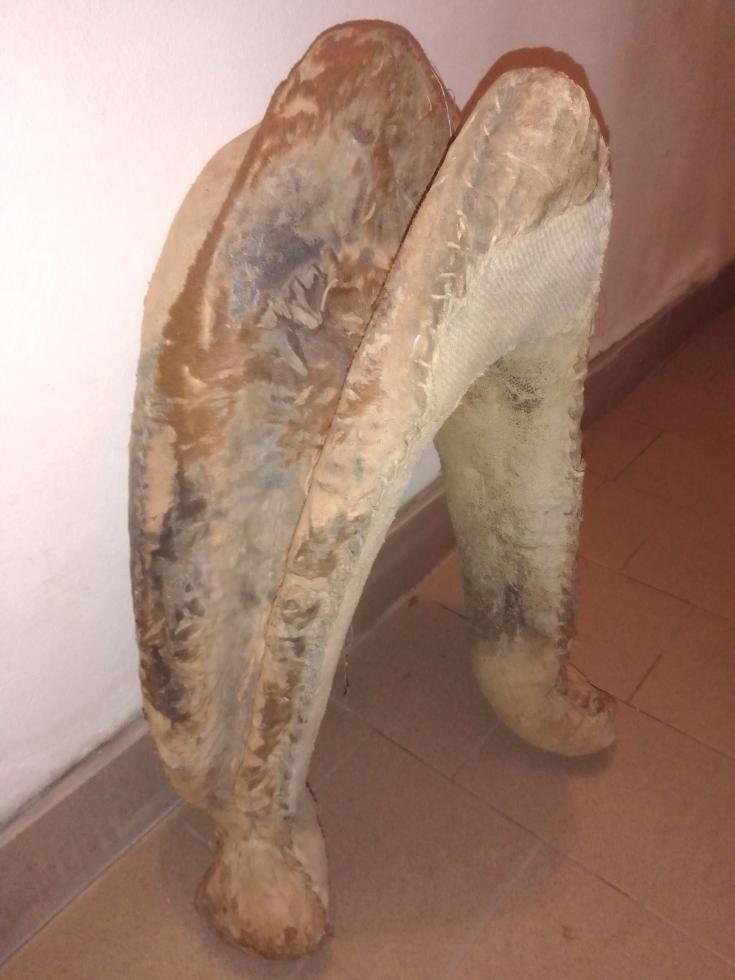 Ecco un'altra questione strampalata. Per cinque euro, ho appena comprato da un rigattiere quella che sembra l'imbottitura di un vecchio collare per cavalli/muli. Non sono nemmeno sicuro di come si guardi, suppongo che il lato che fronteggia il muro nell'immagine sotto chiamata Collare1 appoggiasse sul petto dell'animale, con in basso l'estremità che nella stessa foto tocca terra. Giusto? Pensate si possa ricostruire un semplice collare, diciamo per fare qualche piccolo lavoro agricolo, come trascinare modesti carichi di legna? In caso, voi come fareste? Forse si potrebbe rivestire l'imbottitura con del cuoio, rafforzarla con del ferro/legno e mettere una chiusura in alto (ma come?), fissare un paio di anelli alti entro cui far scorrere un paio di redini lunghe, poi aggiungere un secondo paio d'anelli più basso per far passare due catene, una per lato. Le catene andrebbero poi fatte passare per un'imbracatura (o forse basterebbe una cintura) sul posteriore, e quindi collegate al carico. Per adesso dico queste cose tanto per chiacchierare eh, ora come ora non mi avanza tanto tempo, e comunque ho una pessima manualità  .