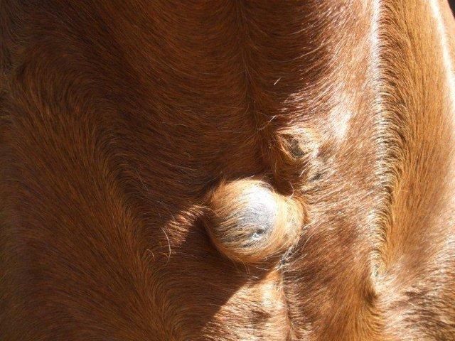 Al tatto si presentano duri e staccati dalla massa muscolare del cavallo,non sente male e neppure sanguinano se per qualche motivo si rompono. Noto però che sono presenti in altre parti del corpo,anche se di dimensioni molto più piccole. La cavalla ha 7 anni è abbastanza grassa e da che mi ricordo questi bugni li ha sempre avuti. Potrebbe essere un'intossicazione causata,magari,dalla presenza delle mucche? Parlerò col veterinario per rintracciare il referto.