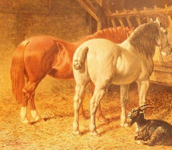 John Frederick Herring Snr _ Horses and a goat in a stable.jpg