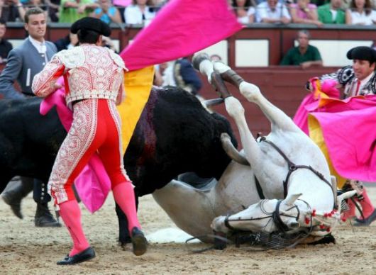 Riporto questa nota del tgcom.mediaset sulla corrida. Purtroppo, oltre al toro (che ha la peggio), moltissimi cavalli hanno gravissimi incidenti (non sono rari i casi in cui vengono letteralmente 'squarciati' dalle corna del toro) e, portati nel retro-arena, ricuciti in qualche modo e a volte addirittura rimandati alla 'belle-meglio' in arena...
