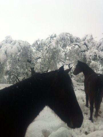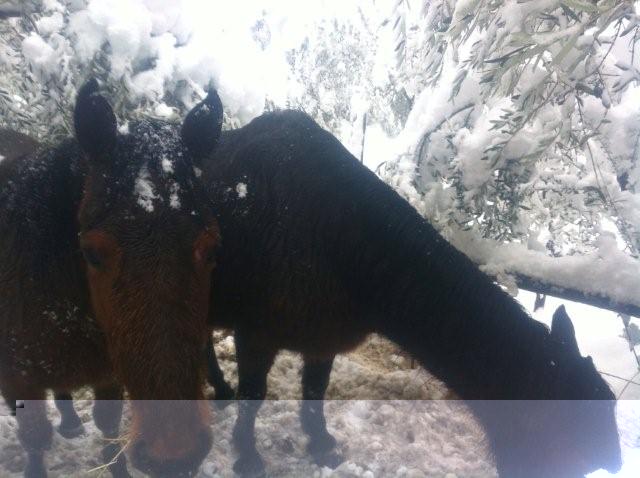 L'acqua è il primo grande problema, gela, ma soprattutto le vasche sono irraggiungibili dai cavalli, salvo sgombrare un po' di neve e ricordargli dove sono, anche se, devo dire, sono molto più interessati al cibo, per l'acqua provvedono mangiando la neve.