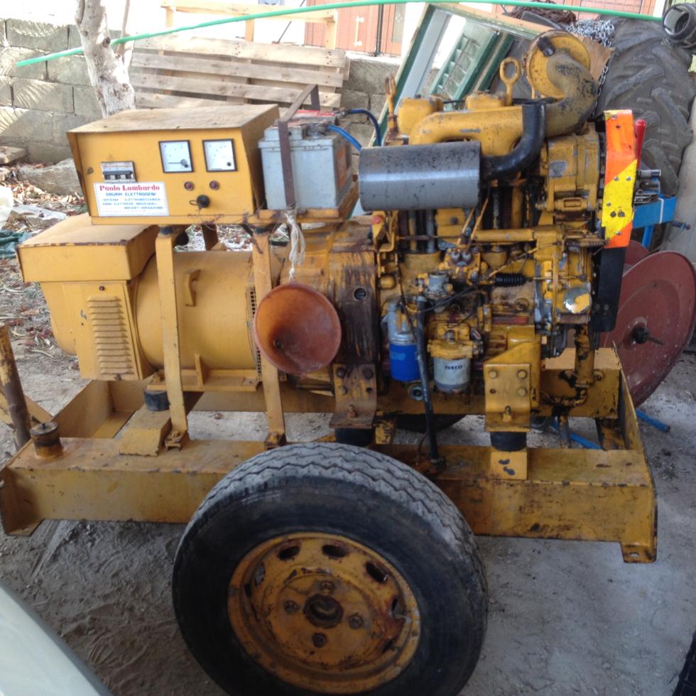 Gruppo elettrogeno da 20 kw,carrellato. Motore adim Same due cilindri raffreddamento ad aria.diesel . Ottime condizioni Generali perfettamente funzionante. Solo da sostituire olio motore e filtro,da sostituire la lancetta Dell'amperometro.