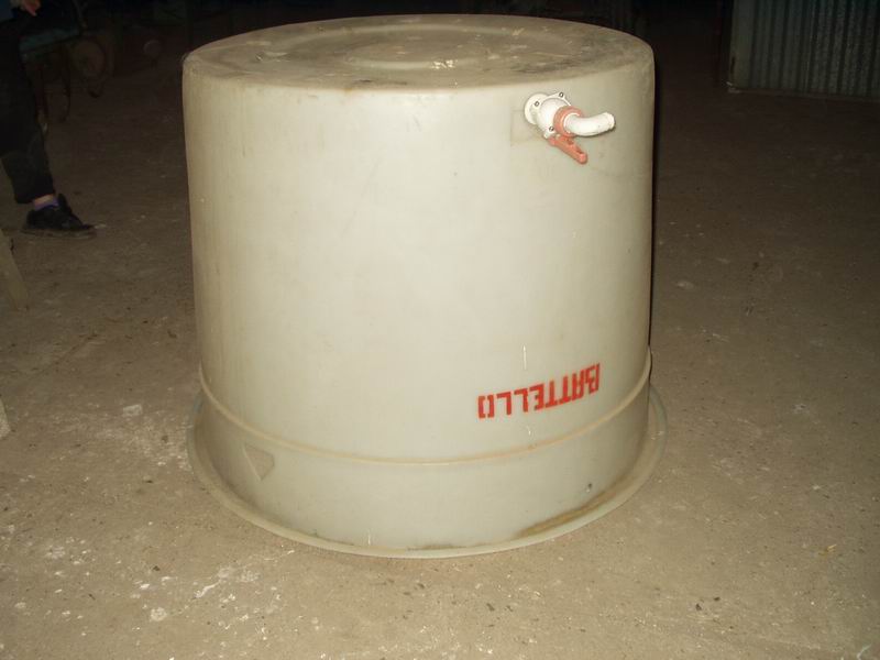 I due tini in polietilene sono ancora disponibili, 1500lt (1.4mt x 1mt circa)il grande circa 800 il piccolo con rubinetto.