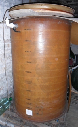 Vendo semprepieno in vetroresina 500 LT., completo di rubinetto di fondo e flangia di chiusura con camera d'aria e pompa, per vino.