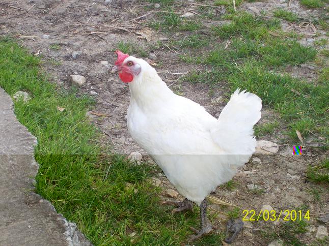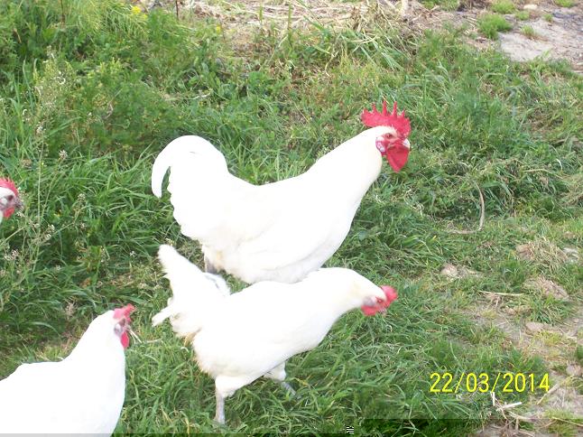 ciao  cedo uova di bresse bianca,ottima razza da carne e ottima ovaiola.ecco le foto di alcuni pulcini di quasi un mese.appena torneranno bianchi inserirò le foto dei riproduttori.il gallo è molto ligio al suo dovere e qui piove... Allegato: