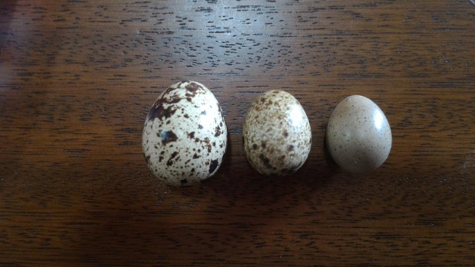 Quello di quaglia da carne è a sinistra quello di quaglia da volo al centro e quello di quaglia cinese a destra