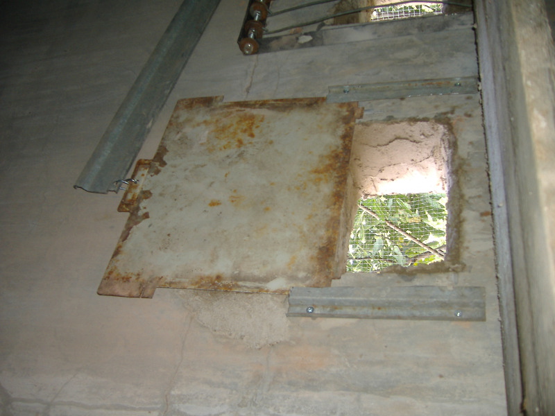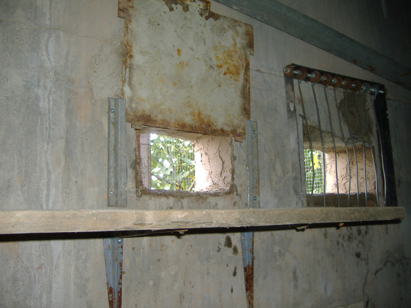 ecco le foto della porta trappola del foro di entrata di quello di uscita e della gabbia "di ambientamento" vista da fuori in diverse angolazioni.