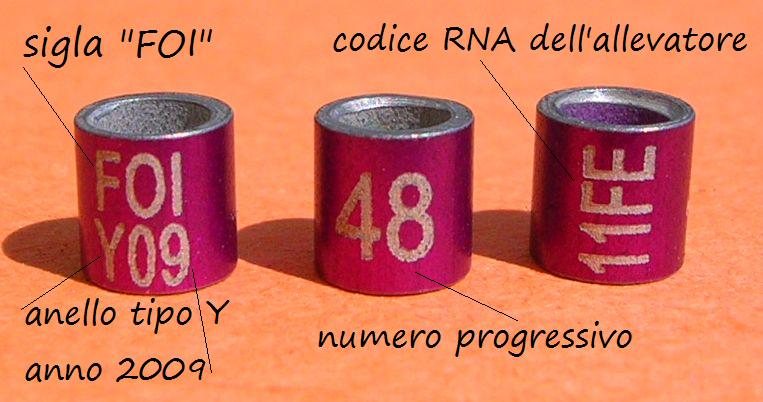 Ciao Michela!! :D Per rispondere alla tua domanda ti metto una bella ( si fa per dire :D )foto con tutte le spiegazioni annesse. Quello è un anello per uccellini ( c'è la sigla F.O.I. federazione ornitologi italiani e non la F.I.A.C.) però penso che il criterio di lettura sia lo stesso anche per i colombi. Qualche volta l'anno di nascita negli anellini dei piccioni è scritto in caratteri più grandi fra il codice allevatore e il numero progressivo del soggetto. Ciao ciao!!!