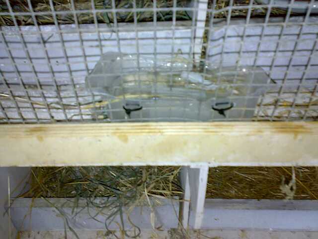 Potevi fare due ciotole come quella che hai fatto per l acqua,a una mettevì l acqua a un altra il mangime,poi se le sollevi da terra qualche cm è anche meglio così non ci fanno le feci dentro!