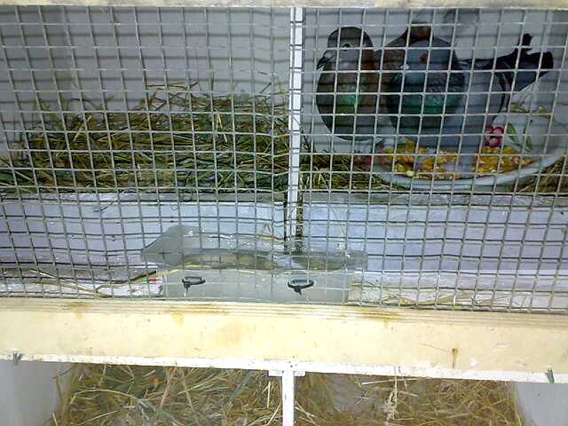 avevo fatto così in principio ma la ciotola x il mangime era troppo grande e non avevo calcolato la distanza dalla rete al battente per pulire il nido e così l ho dovuto mettere lì così..se trovo un contenitore leggermente più piccolo ce lo metto... ;)