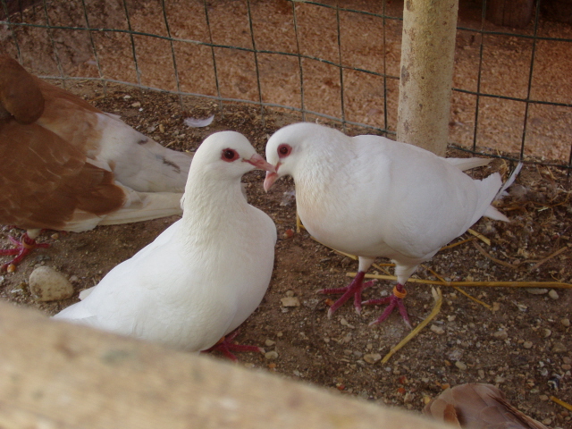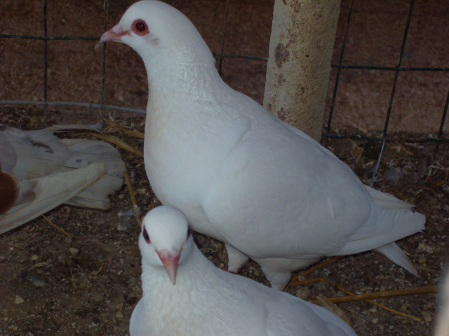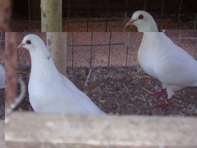 Buongiorno a tutti. Mi hanno regalato una coppia di colombi piu' un maschio. L' allevatore ne ha decine di coppie tutte molto omogenee. La dimensione è pressochè quella di un torraiolo, come potete vedere dalle foto sono caratterizzati dal colore bianco uniforme e palpebra rossa. sono di carattere molto tranquillo, messi nella voliera hanno trovato subito un posto senza disturbare ne essere disturbati. Sapete dirmidi che razza sono ? Grazie, Maurizio