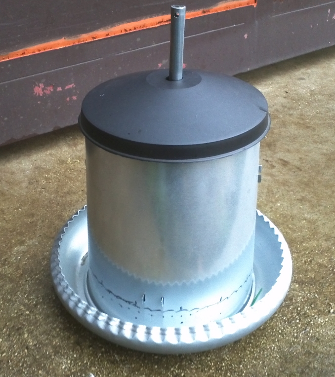 Qui è è la mangiatoia a "sifone" modificata,nella cui parte bassa ho messo dei "rompitratta" per fare in modo di limitare il più possibile lo spreco(non fate caso ai segni del pennarello).