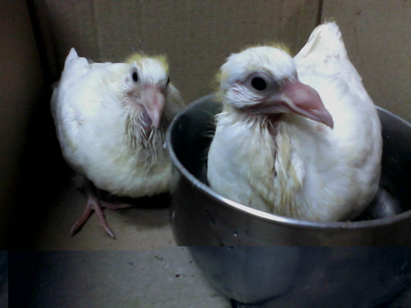 ciao ormai dovrebbro essere già in grado di alimentarsi,altrimenti metti in ammollo dei piselli,fagioli,mais...e li imbocchi te è un pò lunga come cosa però creca di riempirsi bene e poi con una siringa gli dai da bere.anche io adesso sto allevando a mano un bergamasco perchè i genitori non li alimentavano più infatti il fratello è morto .