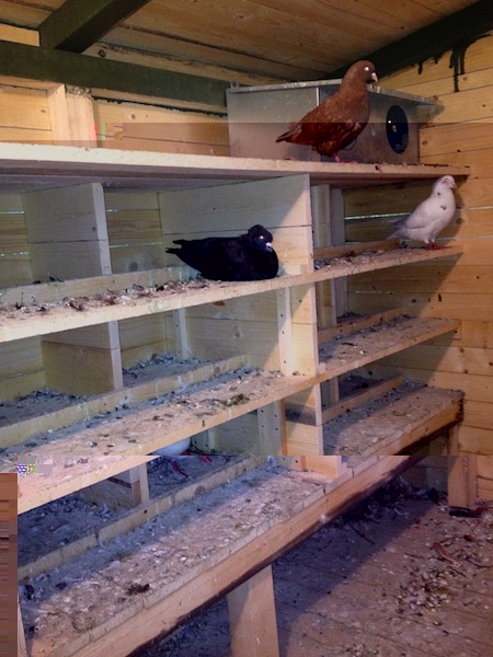 Non hai capito, ogni coppia di colombi deve avere la sua posta idonea a contenere all'occasione due nidi , le poste in più devono essere chiuse per evitare litigi e che vengano sporcate inutilmente (vedi tue foto 4 colombi hanno sporcato da tutte le parti ) i posatoi a V messi in batteria ti permettono una più rapida pulizia .