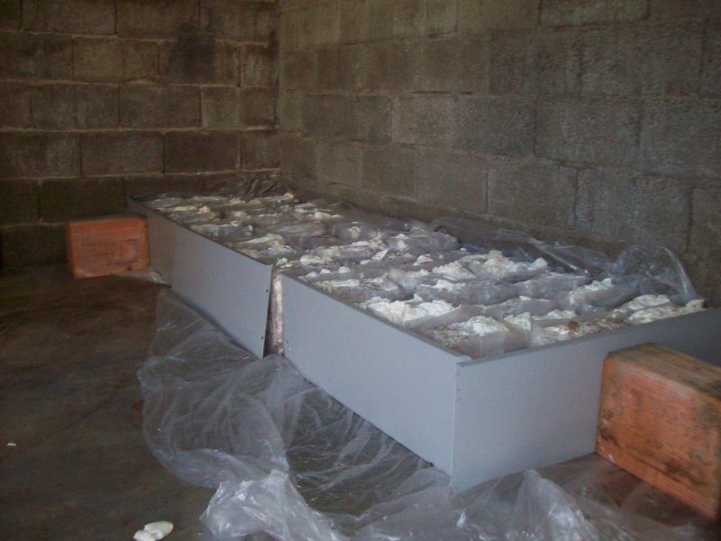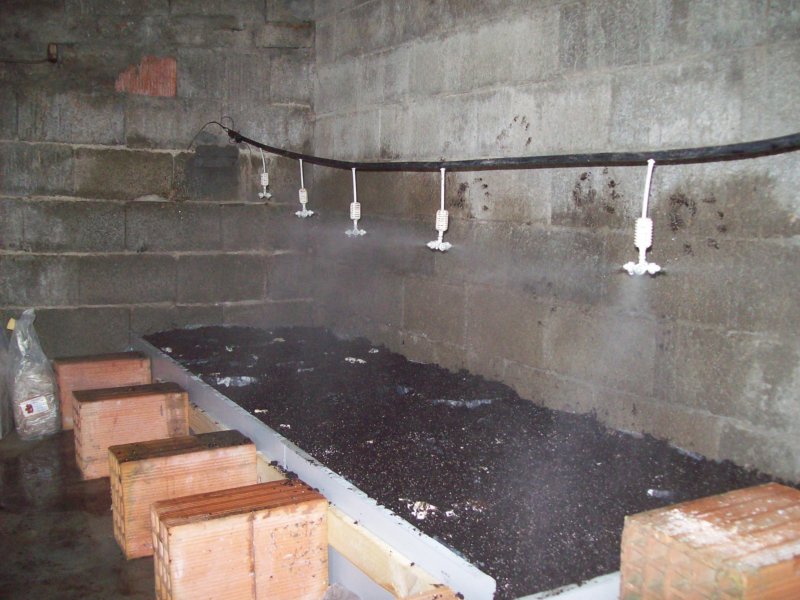 Finalmente c'e l'ho fatta a mettere a dimora queste ballette... allego alcune foto  Ben accette sopprattutto eventuali correzioni,,, Dopo che ho preparato per benino la loro sede ho collegato un piccolo impiantino di nebulizzazzione che funziona a circa tre atmosferere ,adesso ho dato una bella innaffiatina al terriccio e aspetto i primi funghi e vediamo un po..